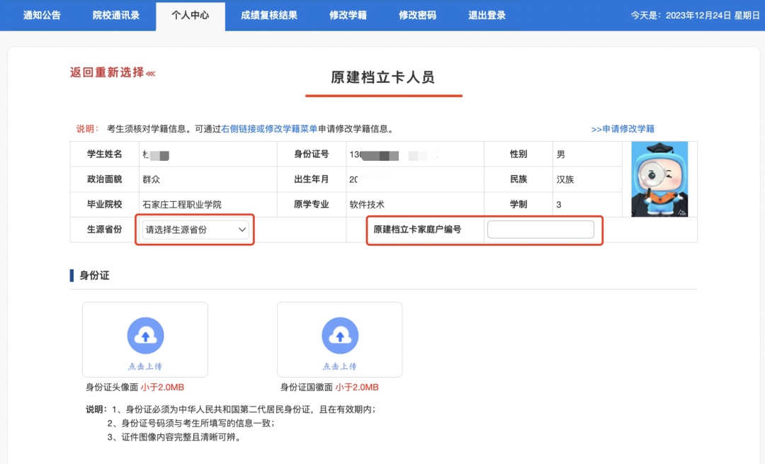 并上传身份证照片和建档立卡相关证明材料