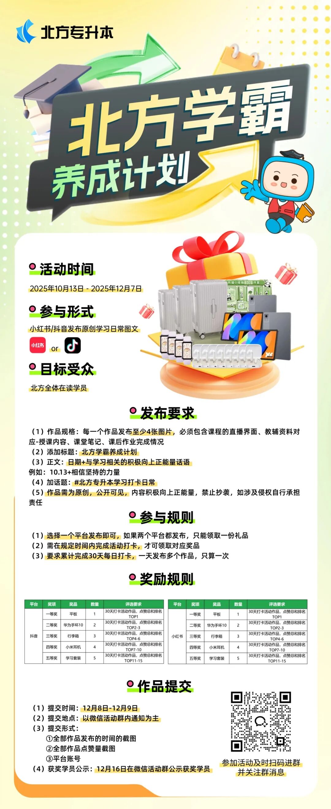 北方专升本学霸养成计划!让学习成为一种习惯,秋季打卡活动来喽~