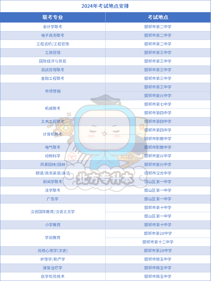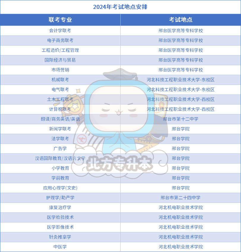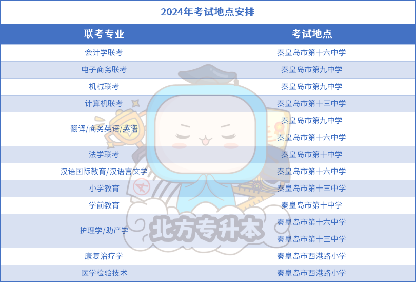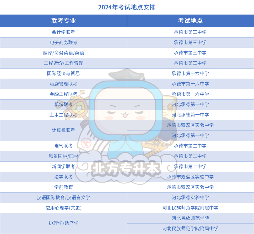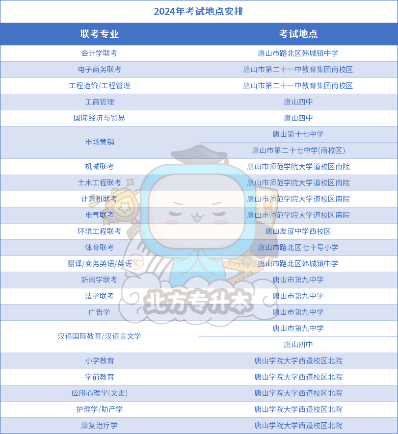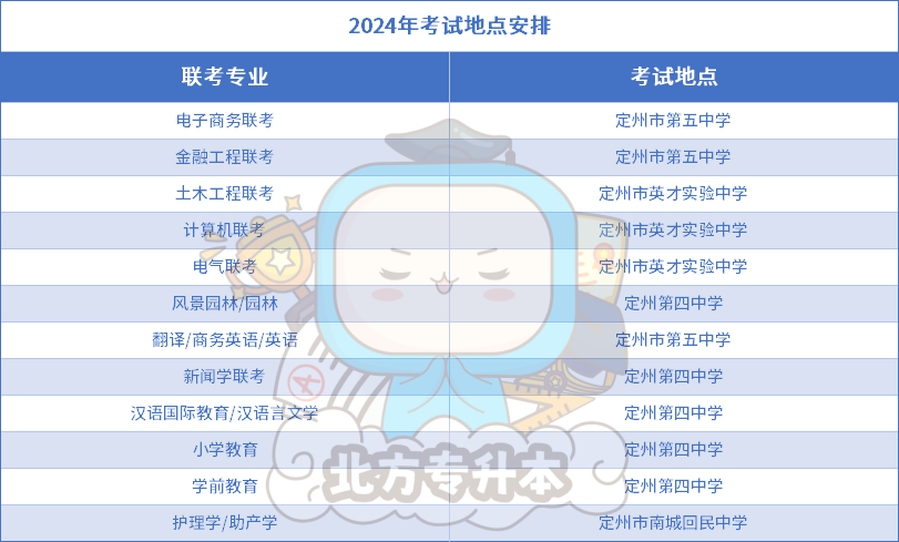 小北整理了2024年各地区各专业的考点安排