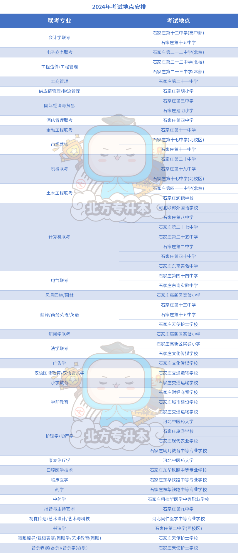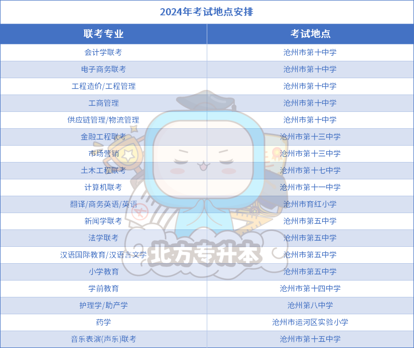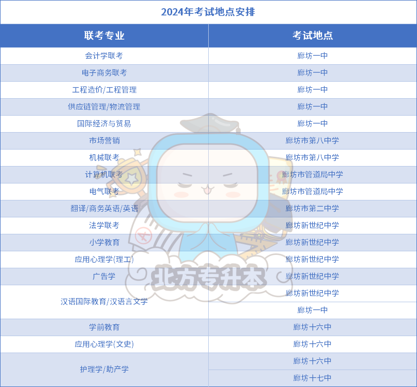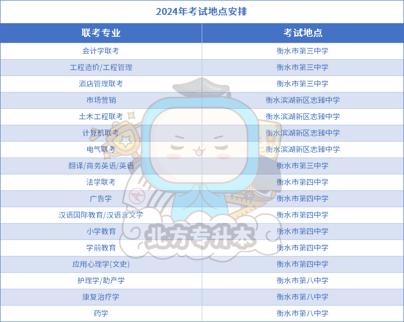 小北整理了2024年各地区各专业的考点安排