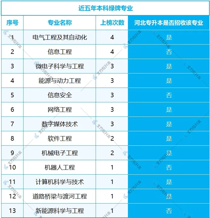 为此,就业市场也发生了翻天覆地的变化,今天小北给大家推荐的专业依据的是近五年本科绿牌专业,其中不少专业河北专升本也在招生!