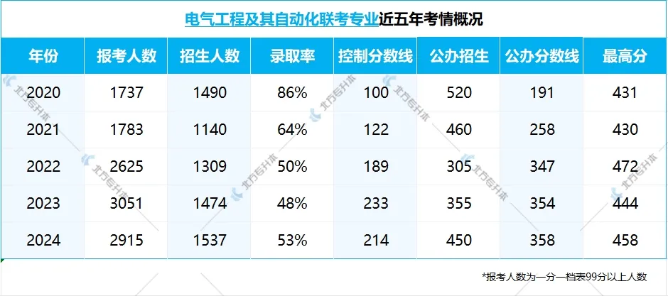 电气专业的报考情况还是比较稳定的,招生也一直是上涨的趋势,报录比在50%上下浮动,并且公办招生喜人!