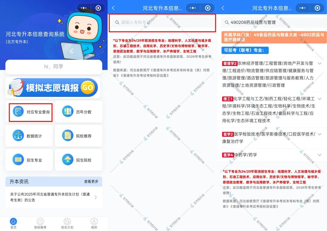 点击首页【对应专业查询】