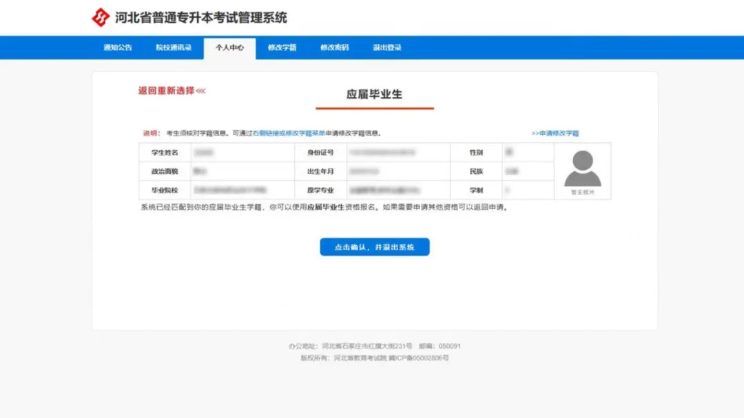 各类考生注册后登录系统填报相关信息,等待资格审核。(其实就是核实下信息是否有误)