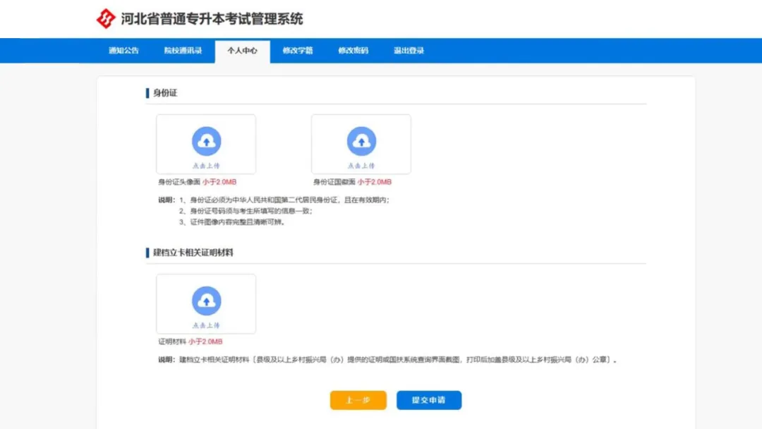 >普通考生不用提交!各自专科院校会将学生信息导入系统。