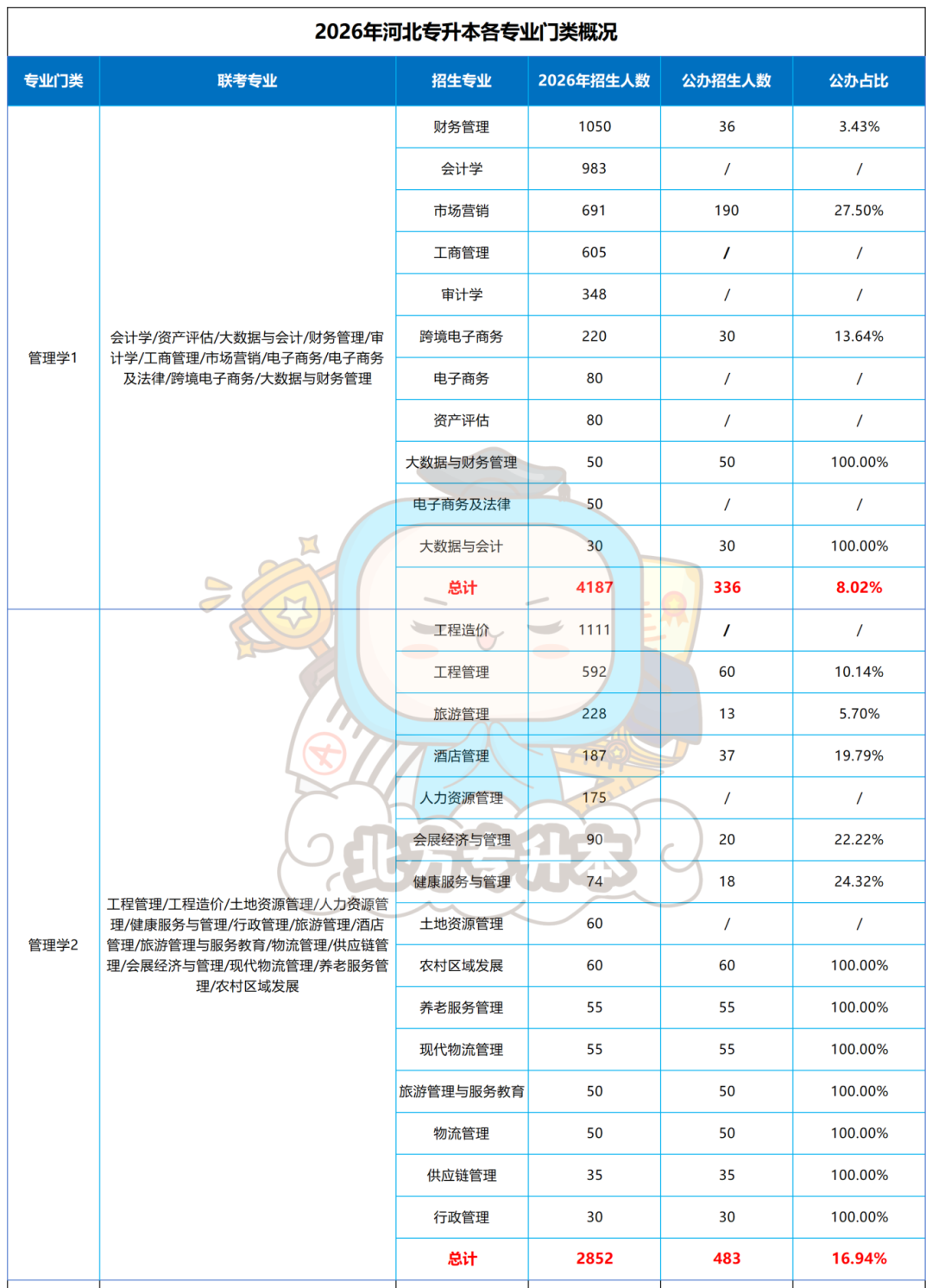▶管理学2仅有3个专业没有公办院校招生,且有7个专业为全公办招生,管理学2总公办招生占比16.94%。